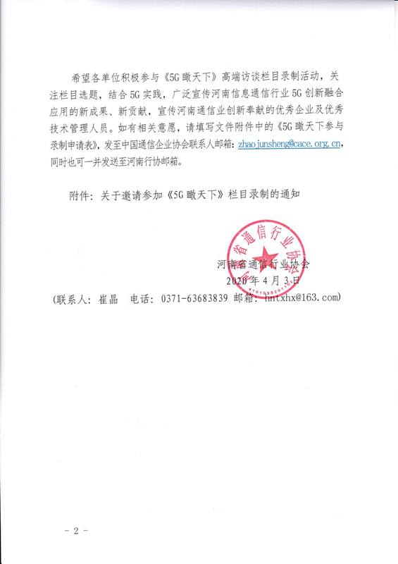 附件:關于邀請參加《5G瞰天下》欄目錄制的通知