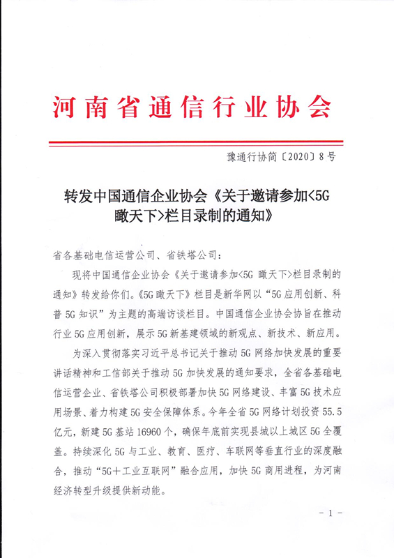 轉發中國通信企業協會《關于邀請參加<5G 瞰天下>欄目錄制的通知》