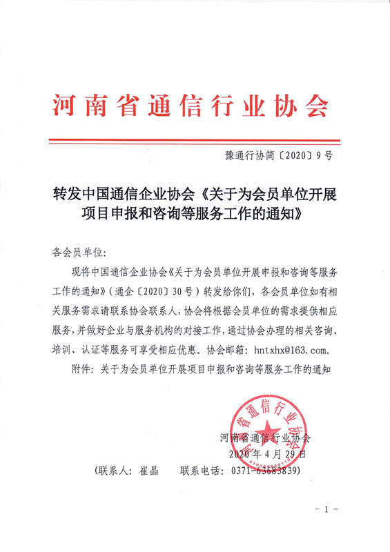 轉(zhuǎn)發(fā)中國通信企業(yè)協(xié)會《關(guān)于為會員單位開展項(xiàng)目申報(bào)和咨詢等服務(wù)工作的通知》