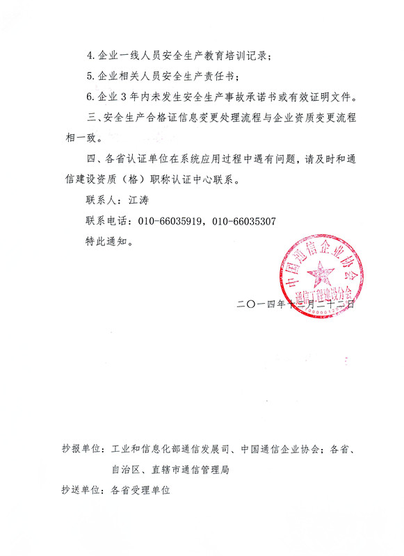 關于公布2014年第4季度獲得通信建設工程企業《安全生產